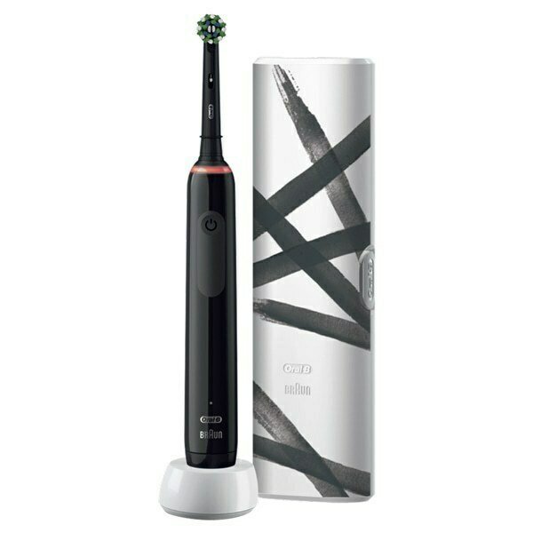 Επαναφορτιζόμενη ηλεκτρική οδοντόβουρτσα Oral-B Pro 3 που σας βοηθά να βουρτσίζετε τα δόντια σας για 2 λεπτά όπως προτείνει ο οδοντίατρός σας χάρη στον επαγγελματικό χρονοδιακόπτη, και σας ειδοποιεί κάθε 30 δευτερόλεπτα να αλλάξετε την περιοχή που βουρτσίζετε.