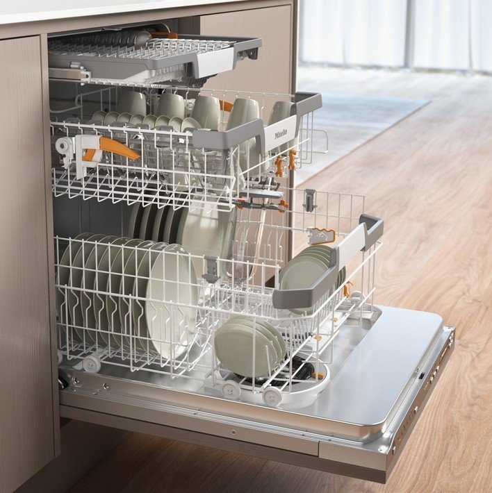 Πλήρους εντοιχισμού, Προστασία ευαίσθητων σκευών, Ρύθμιση άνω καλαθιού σε διαφορετικά επίπεδα