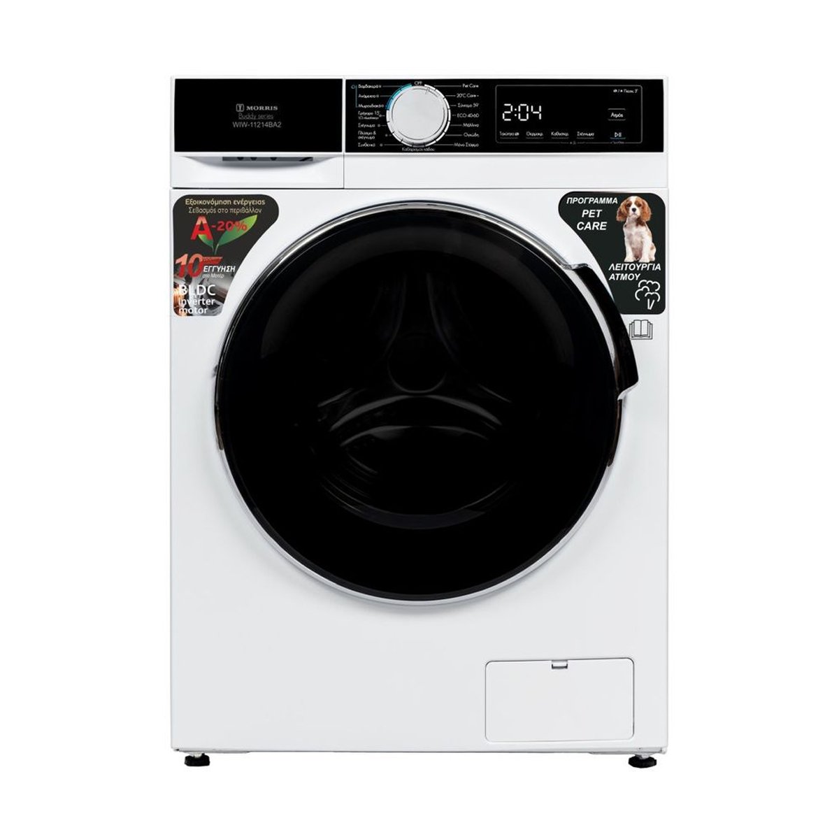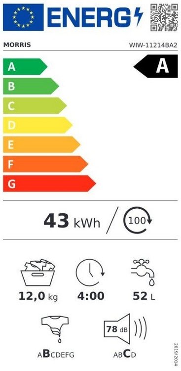 Πλυντήριο ρούχων MORRIS WIW-11214BA2 χωρητικότητας 12 κιλών, ιδανικό για καθημερινή χρήση, με προηγμένες λειτουργίες.