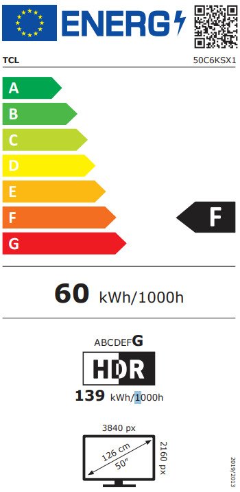 Κατανάλωση ενέργειας σε λειτουργία HDR (kWh/1000h) :